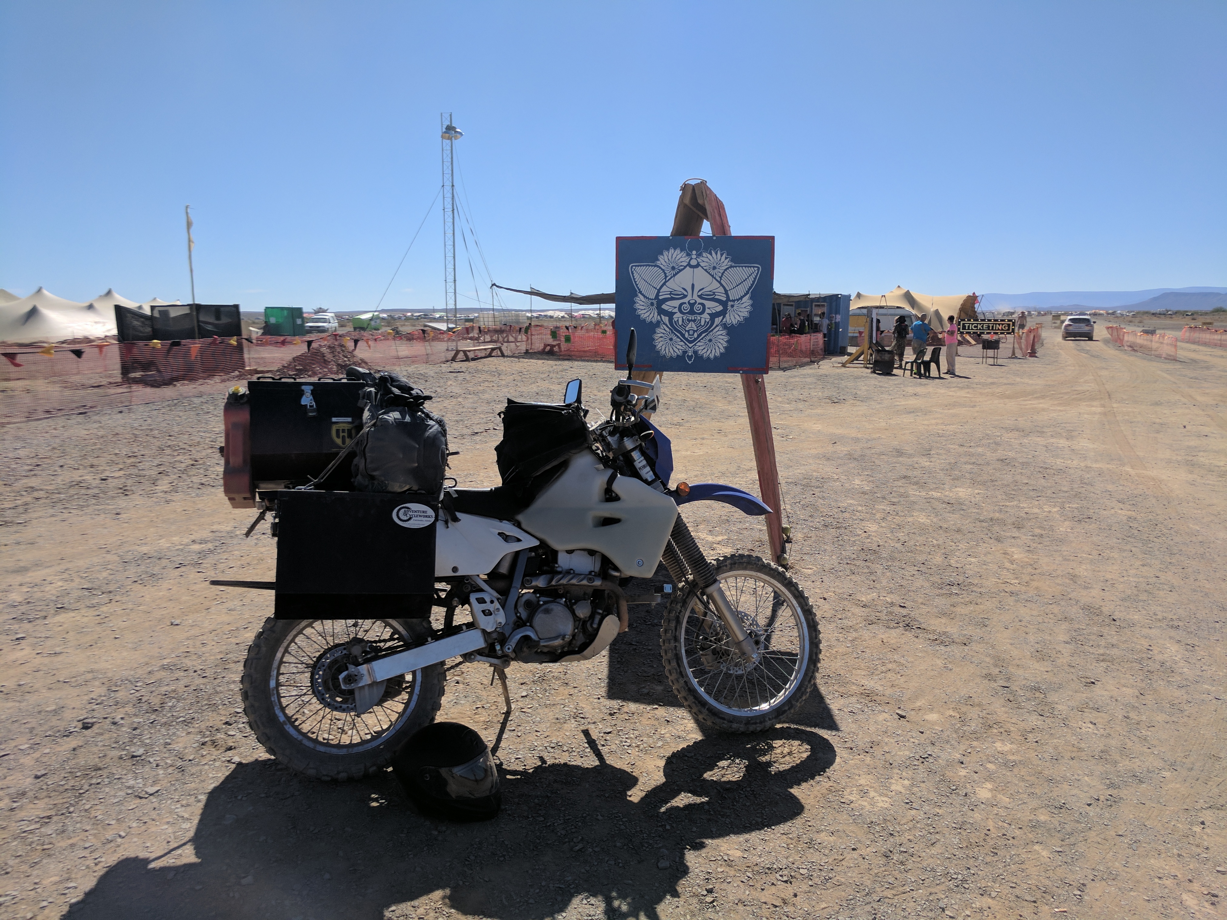 I made it through the gate with over an hour to spare before it closed (at sunset, obviously) and went to reception. I was in luck! They had one last tent camping spot in the “overflow” area (read: a long-ass walk from facilities, with no power and hardly and shade). I was also out of luck: motorcycles aren’t allowed any further on the road into Sossusvlei. The woman recommended hitchhiking (which I’ve read is technically illegal in national parks in Namibia). Alright… it’s worth a try.