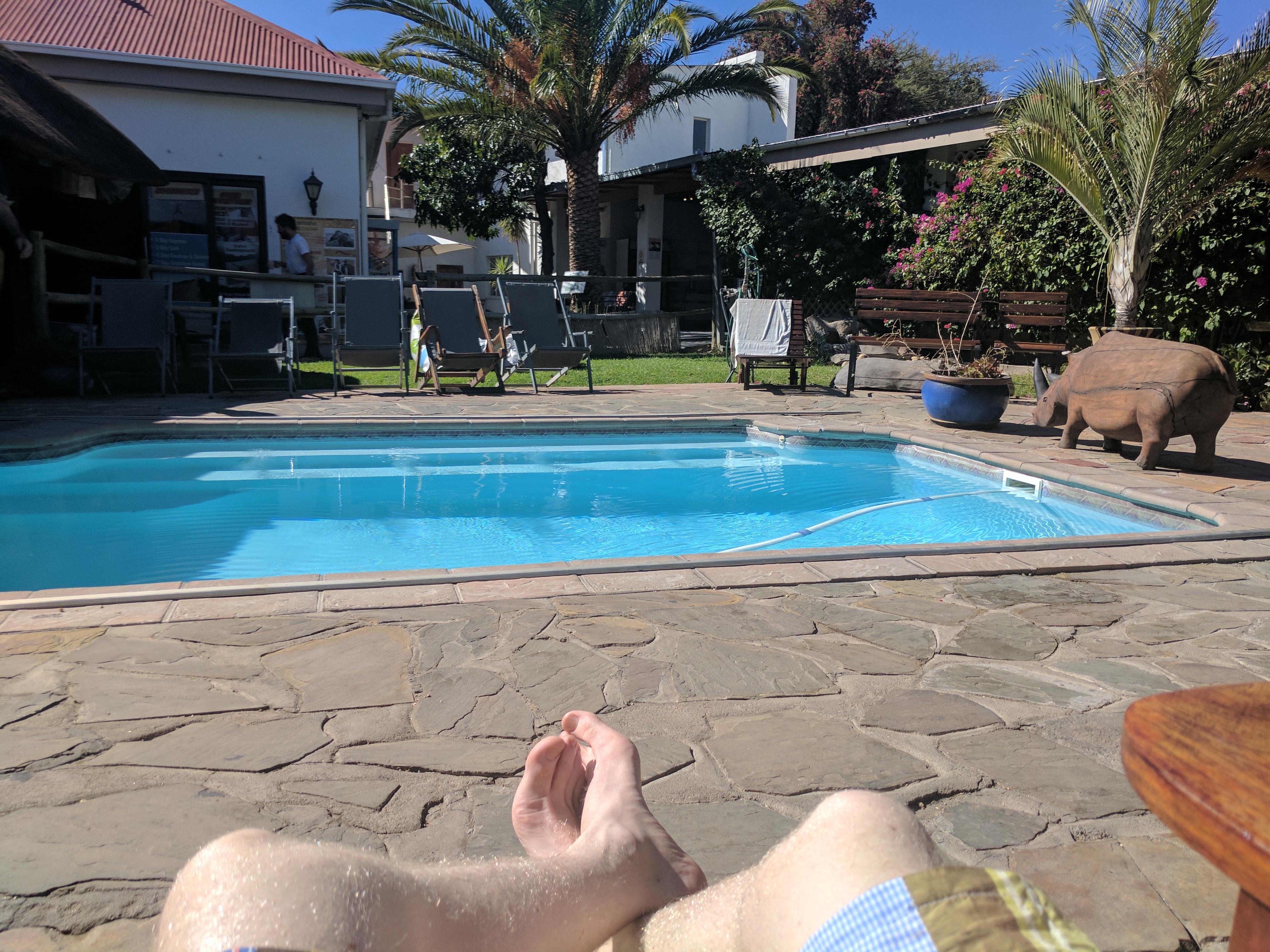 I was in lucky and snagged a room. The place made dinner every night, has a bar, and subscribed to a pleasant tendency in accommodations in southern Africa, including a pool.