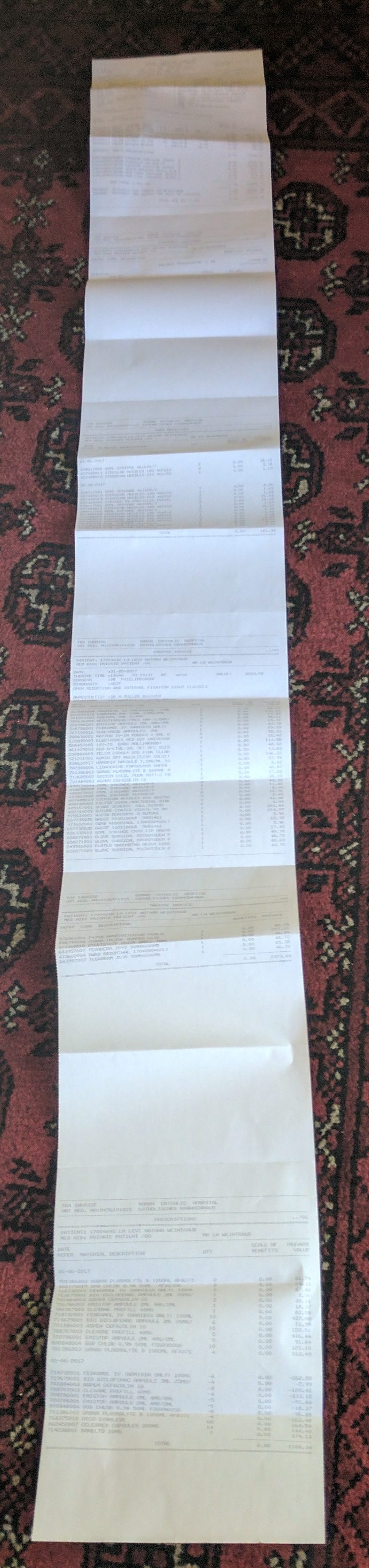 The next three nights dragged on in a manner familiar to anyone familiar with hospital convalescence. A string of disaffected nurses (sister in this Catholic hospital) paraded through my room at intervals, including in the middle of the night, taking vitals, swapping IV solution and shitty pain meds, and frowning. A friendly physiotherapist came by and subjected me to painful exercises including breathing in and out of a tube attached to a plastic box. Every morning, a bored and droning voice read scripture in an unemotional monotone over a pervasive intercom system. I watched TV. I read my books. I stared at the wall. I ate terrible food (though honestly far from the worst hospital food in the world). Every excursion in and out of bed was met with a horrible shooting pain from my broken ribs, always accompanied by a dull sickening feeling I associate with your body telling you you’ve hurt yourself in a significant way. One morning I discovered the unfortunate fact that hiccups with broken ribs is fucking excruciating, and simultaneously that significant pain is a pretty good cure for hiccups.